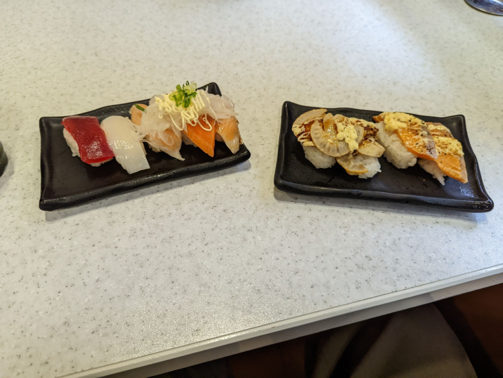 マグロとイカとサーモンとホタテを食べました。