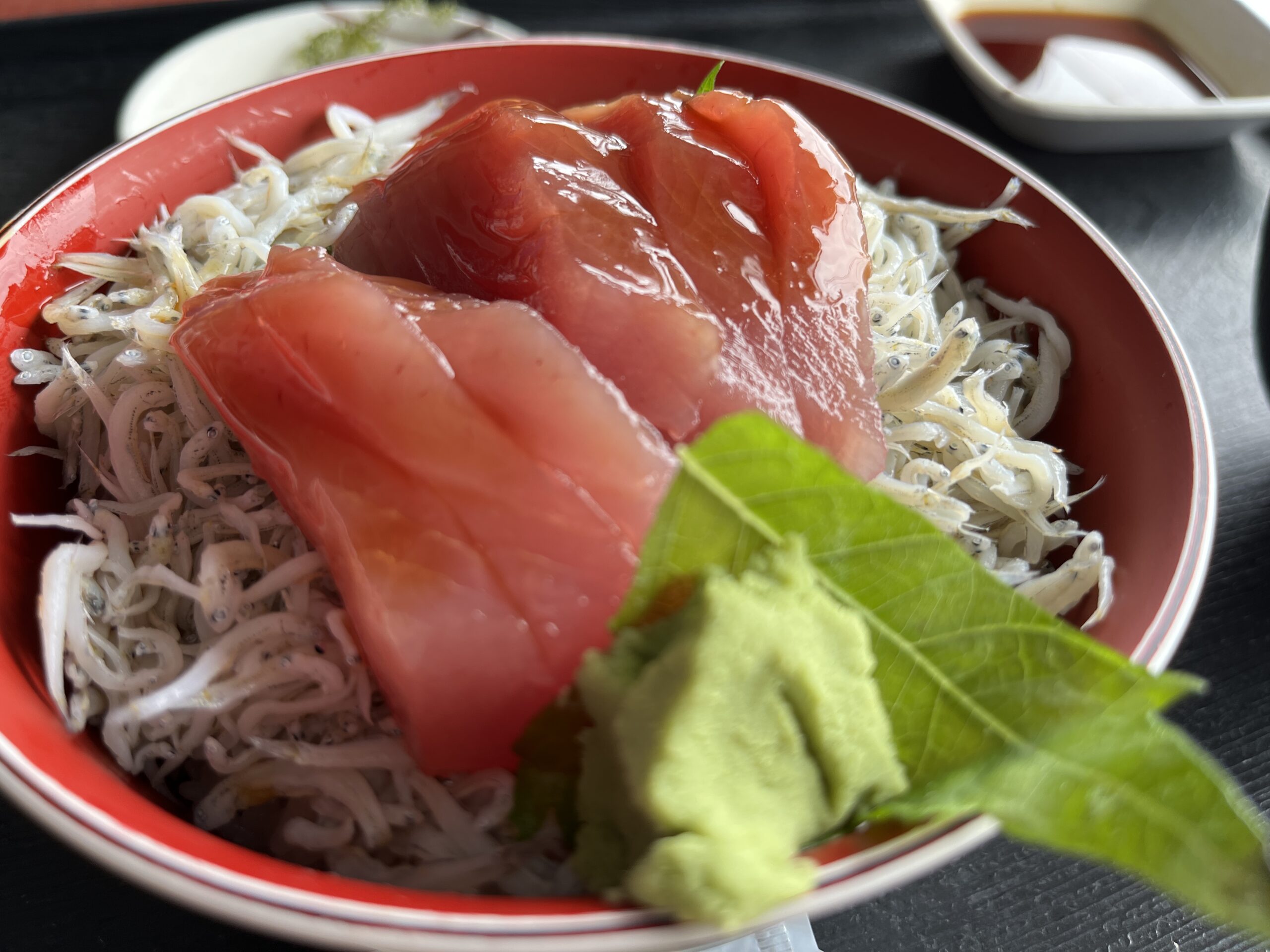 私はマグロシラス丼を注文。お値段は800円で標準的な値段。提供まで3~5分程度だったと思います。素晴らしいですね。そして出てきたのがこれ。素晴らしいですね。写真にはありませんが味噌汁も付いてきました。素晴らしいですね。